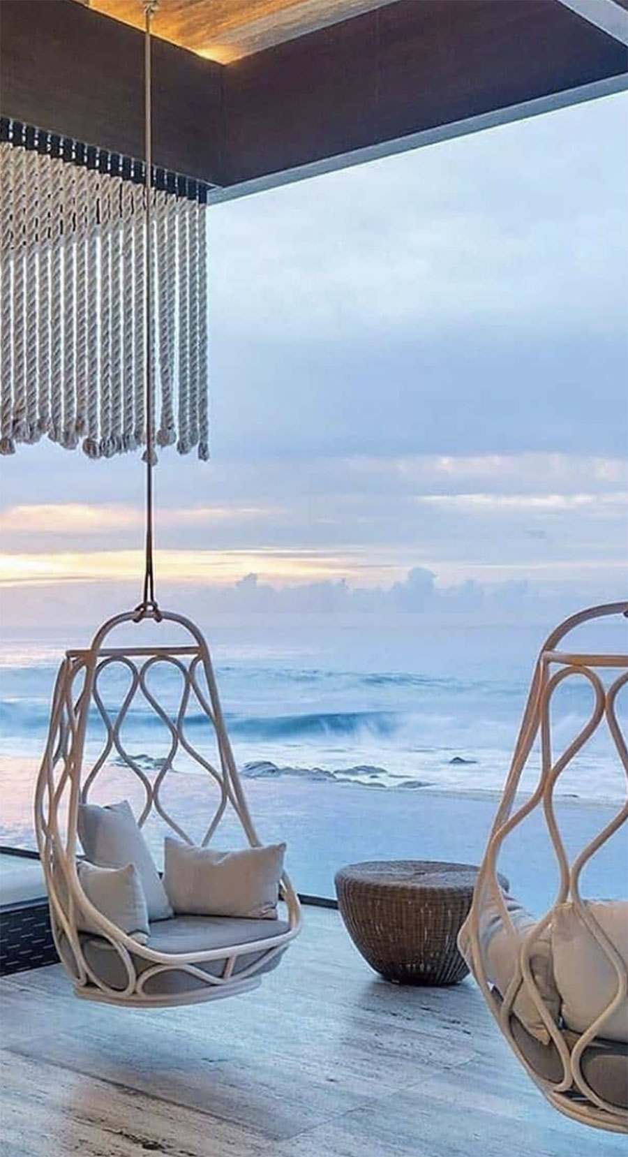 Her design signature is focused on marine elements, using natural materials and a light, fresh aesthetic to evoke the soothing tranquility of the sea.