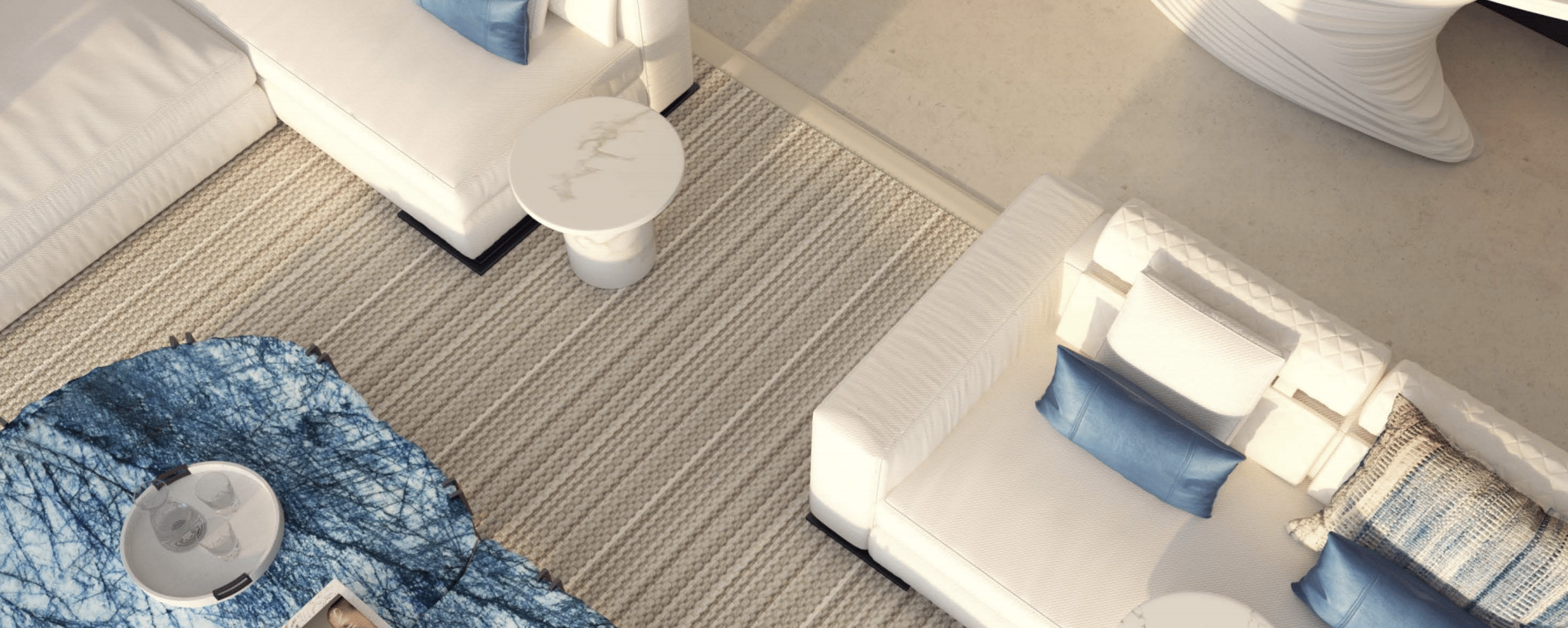 Founder Muriel Abecassis has a characteristic way of working with light, being able to maximise and enhance the brightness of the room, to create that sense of liberation that one feels when sailing the ocean.